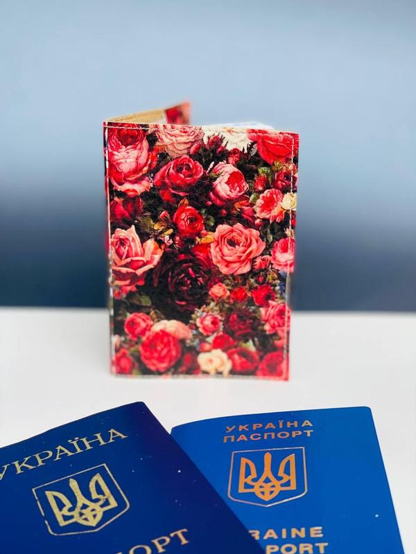 Обложка на паспорт - книжку кожа , загранпаспорт, загран паспорт венный билет цветы розы