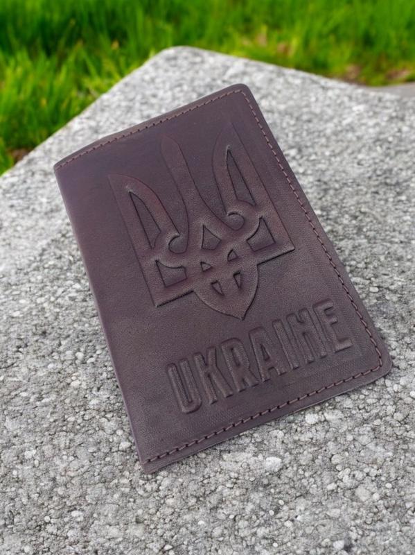 Обкладинка на паспорт шкіряна - герб україни - коричнева