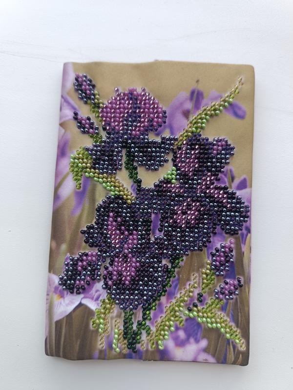 Обложка на паспорт вышита бисером на авторской ткани. Размер 9x14 см. --- 🌸 Обложка для паспорта «Фиолетовые ирисы» — изысканная ручная работа 🔹 Материал: плотная ткань с фотопечатью, внутренняя часть — белая сетчатая основа с декоративными швами 🔹 Отделка: вышивка бисером ручной работы 🔹 Размер: стандартный формат для паспорта 💜 Эта обложка – настоящее произведение искусства, сочетающее современную печать и традиционную технику бисерной вышивки. На лицевой стороне – объемная композиция из темно-фиолетовых и розовых ирисов, выполненная из блестящего бисера, который добавляет текстуры и глубины. Фон - нежная фотопечать с изображением цветов в светлых лавандовых тонах, создающая гармоничный контраст и подчеркивающая утонченность вышивки. 🔸 Обратная сторона – полностью покрыта фотопечатью с ирисами, что создает целостность дизайну. 🔸 Внутренняя часть - аккуратно прошита, с прозрачной вставкой для надежной фиксации документа. ✨ Идеальный выбор для тех, кто ценит красоту, ручной труд и уникальные вещи. Такая обложка не только защитит ваш паспорт, но и станет эстетичным акцентом в путешествиях. --