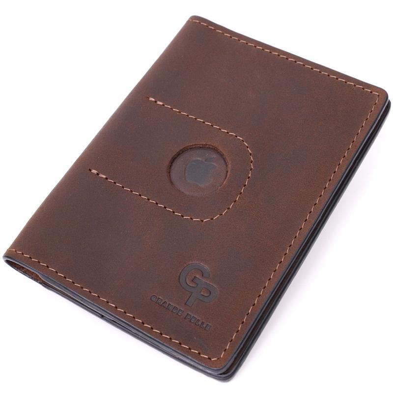 Стильная кожаная обложка на паспорт с держателем для apple airtag коричневый grande pelle...