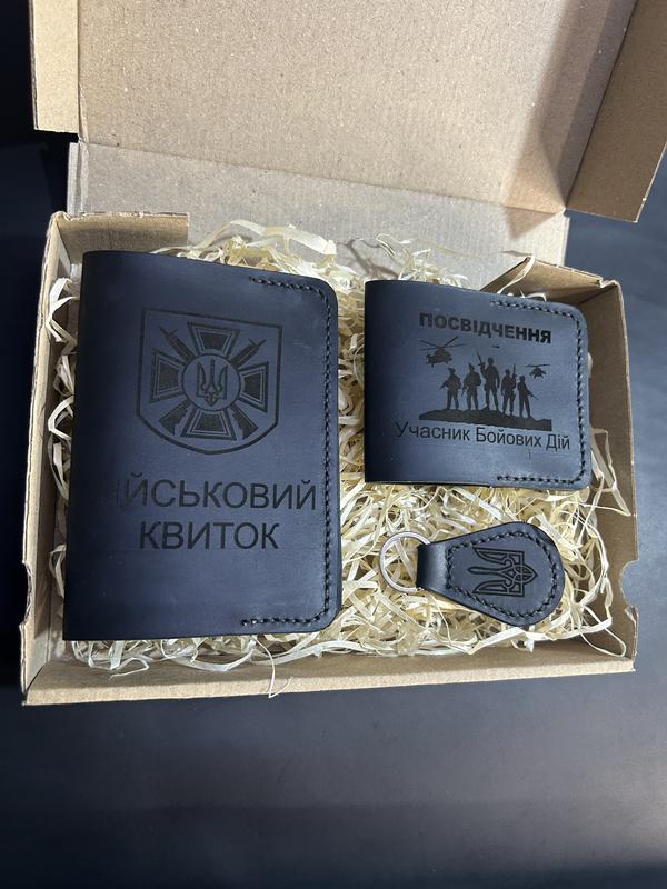 Подарунковий набір з шкіри crazy horse для захисника колір чорний військовий квиток убд та...