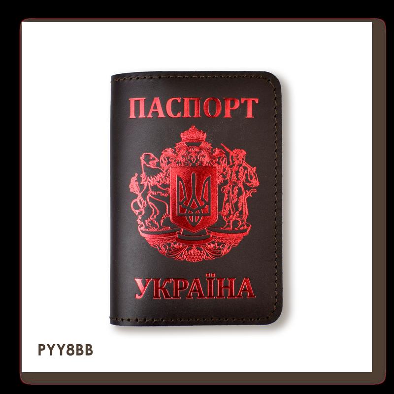 Обложка для паспорта «украина с большим гербом» (темно-коричневая, красное тиснение)