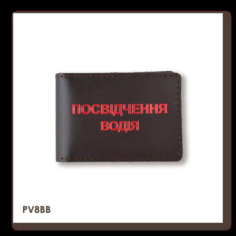Обложка для водительского удостоверения стандарт (темно-коричневая, красное тиснение)