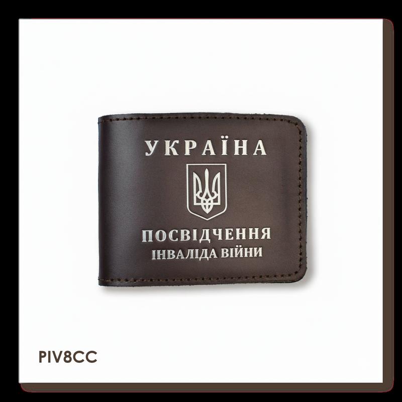 Обложка для удостоверения инвалида войны (темно-коричневая, серебряное тиснение)