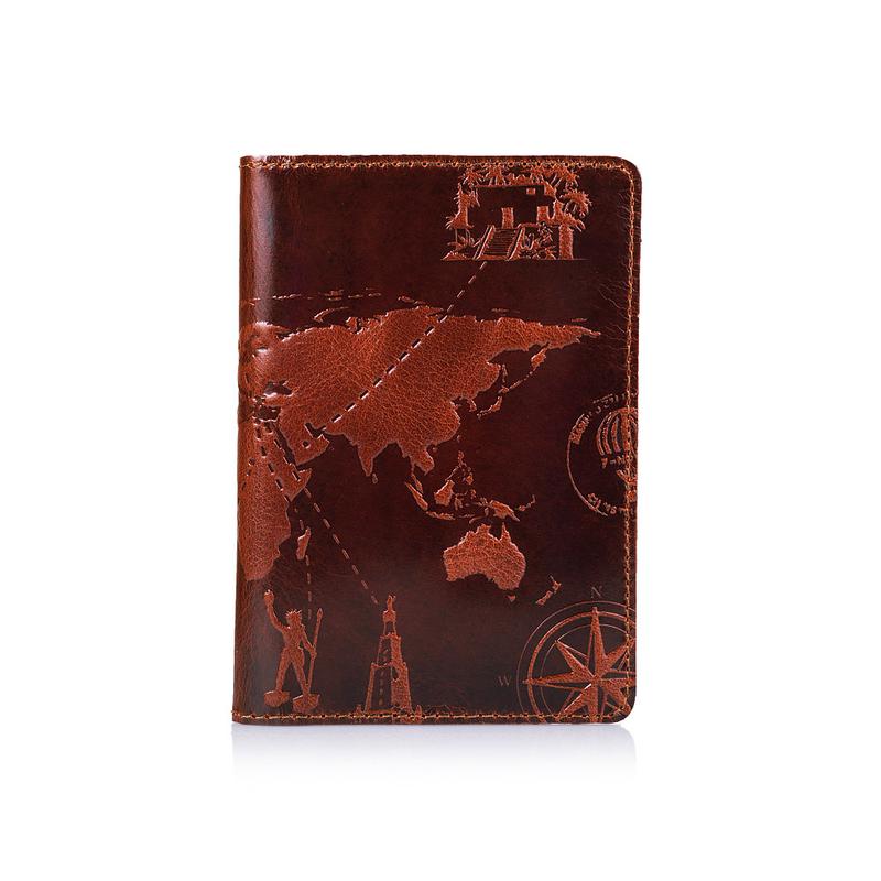 Кожаное дизайнерское портмоне для документов коньячного цвета, коллекция "7 wonders of the...