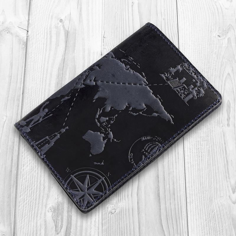 Синяя обложка для паспорта ручной работы с художественным тиснением и отделением для банко...