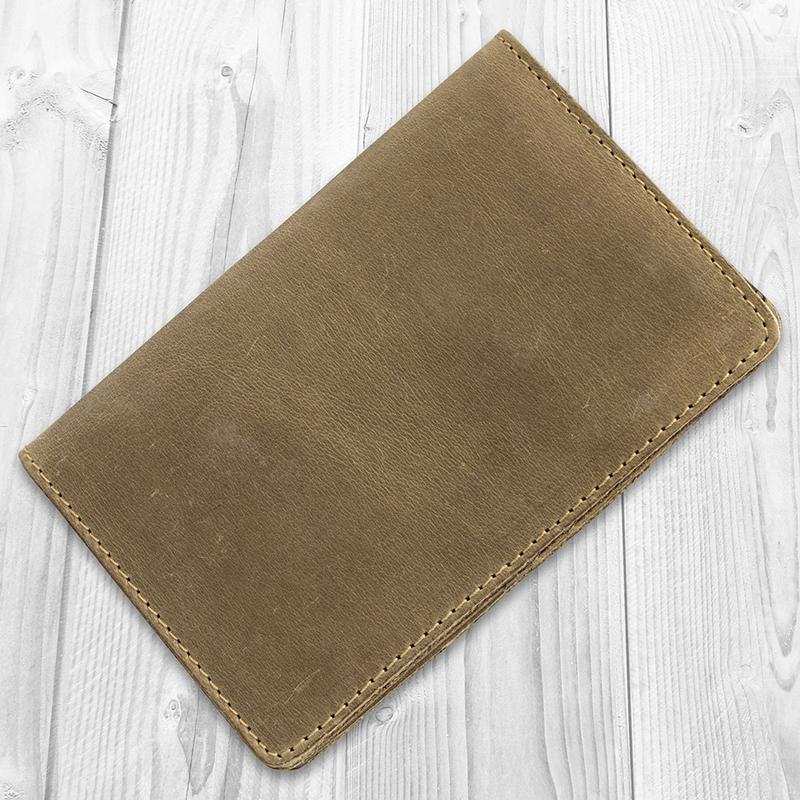 Кожаная обложка-органайзер для документов c вложением пвх оливкового цвета