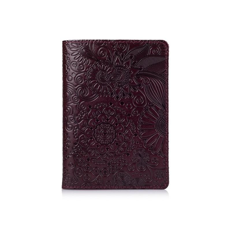 Портмоне кожаное фиолетовое для документов c вложением пвх , коллекция "mehendi art"