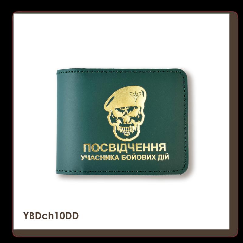 Обложка для удостоверения убд «череп дшв» (зеленая, золотое тиснение)