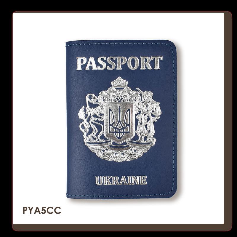 Обложка для паспорта passport с большим гербом (синяя, серебряное тиснение)