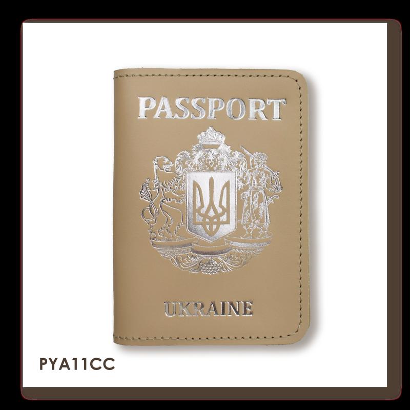 Обложка для паспорта passport с большим гербом (бежевая, серебряное тиснение)