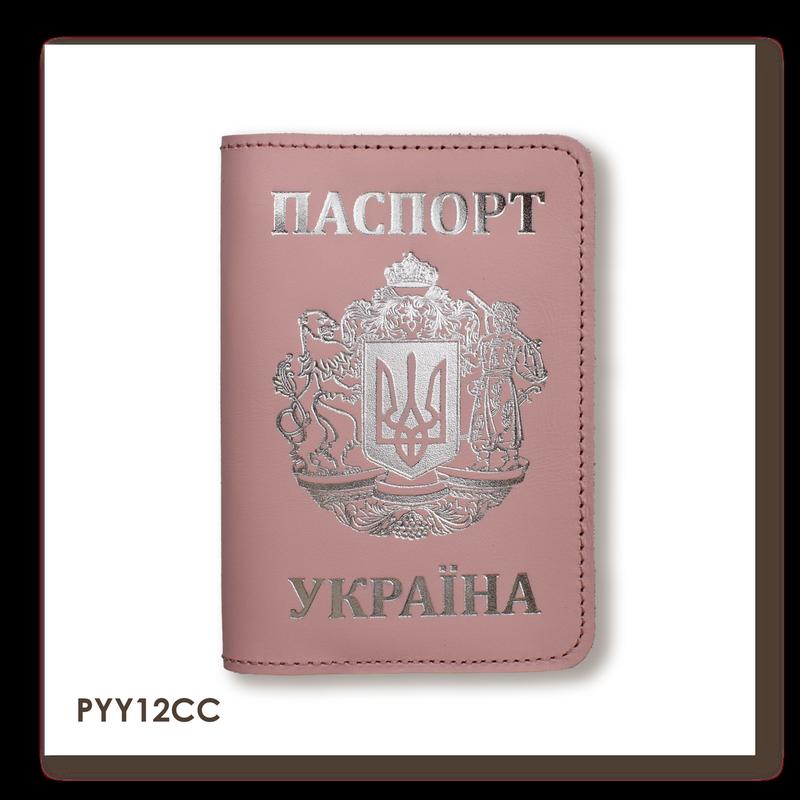 Обложка для паспорта украина с большим гербом (розовая, серебряное тиснение)