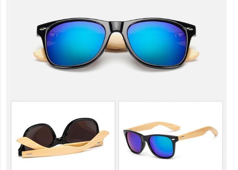 Очки в пластиковой оправе, с деревянными светлыми дужками и защитой от солнца 100% или 400UV, линза диагональ 5.5 см, зеркальная, ширина рамы 14.5 см, очки унисекс, в наличии чёрные очки с синим зеркалом, другие цвета под заказ, около 2-3 недель доставки На очках есть дефект, видно на последних фотографиях.