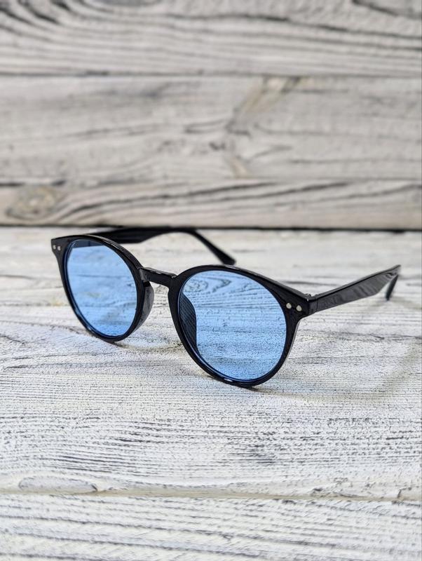 Солнцезащитные очки овальные, унисекс, голубые в пластиковой черной оправе ( без брендовые...