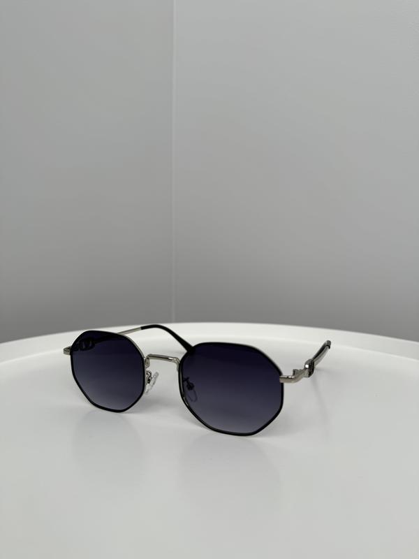 Окуляри мають фіолетовий відтінок лінзи, оправа срібна