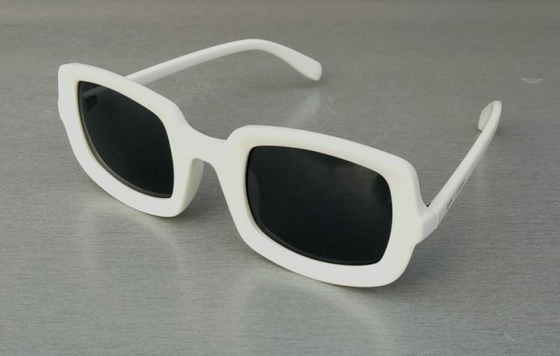 Брендові стильні жіночі сонцезахисні окуляри чорні лінзи в молочній оправі