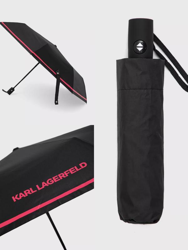 Парасоля із колекцiï Karl Lagerfeld. Модель виготовлена із узорного матеріалу. - Модель вiдкривається автоматично. - У комплекті чохол. - Довжина парасольки перед розкладанням (від ручки до кінчика): 28 см. - Довжина парасольки в розкладеному вигляді (від ручки до кінчика): 55 cm. Склад: Текстильний матеріал, Метал