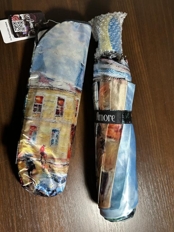 Продаж зонта Amore, атласные яркие с принтом масляных картин, в романтическом стиле. Зонт из качественной ткани, система антиветер, 10 спицы.