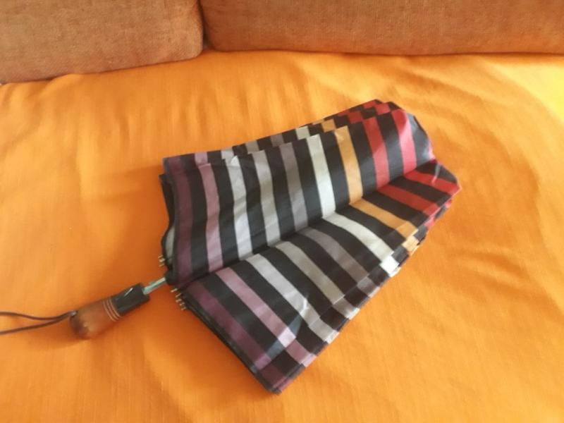 длина с ручкой 46см, большая --в d имеет 106 см,ньансы:фото 3--измененная форма пуговицы, фото 5--покрытие имеет следы пользования Зонт прочный!, не протекает!