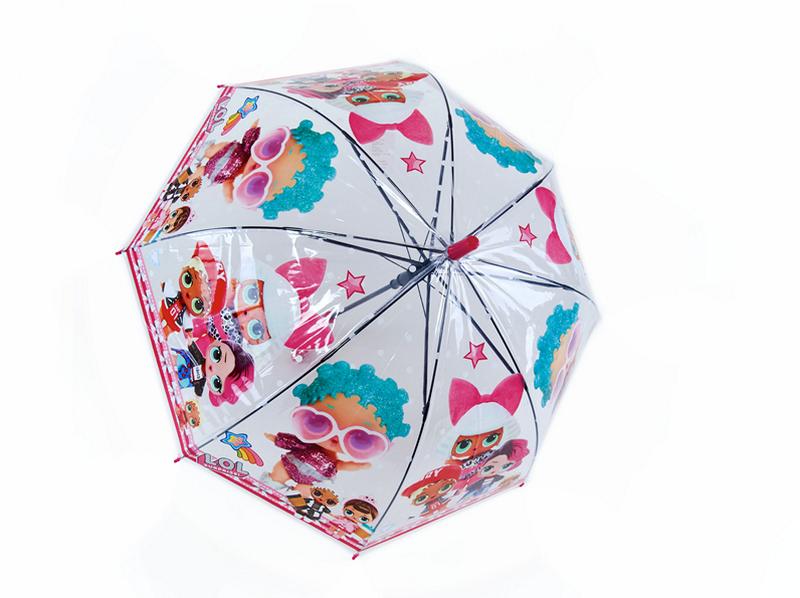 Зонтик детский для девочек Стильный красный детский зонтик для девочек с любимыми куклами LOL. Надежная защита вашего ребенка в непогоду. Каркас зоната изготовлен из крашеной стали и карбона, и имеет форму грибочка. Купол зонта изготовлен из прозрачного поливинила с ярким красочным принтом. Удобная загнутая ручка крючек позволяет ребенку надежно удерживать зонт. Достаточно легкий и практичный зонтик прекрасно подойдет для вашего ребенка.