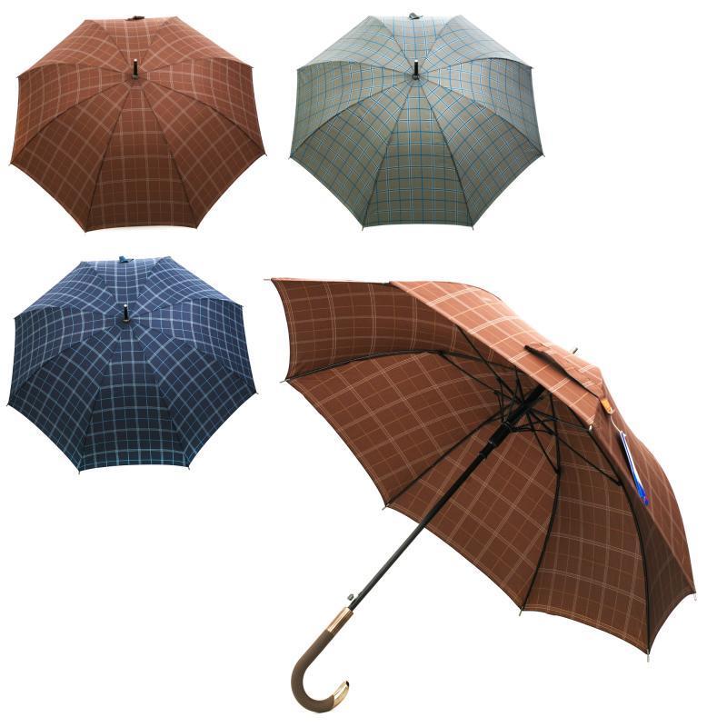 Парасолька - тростина "Клітина", 8 спиць. 3 кольори, напівавтомат. Матеріал - поліестер. Діаметр розкритої парасолі - 110 см.