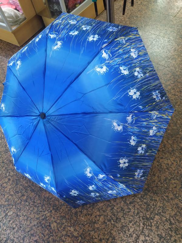 Тип зонта: - Механический зонт, который открывается и закрывается вручную. Дизайн: Синий купол с узором из белых цветов, напоминающих полевые цветы или одуванчики. Купол зонта из ткани : частей! Это премиальная ткань для зонтов!! Функциональность: Обеденовал защиту от дождя и мокрого снега. Зонт маленький,компактний: складений 24 см. Удобный и помещающийся в небольшую сумку,рюкзак Можно детям в школу.