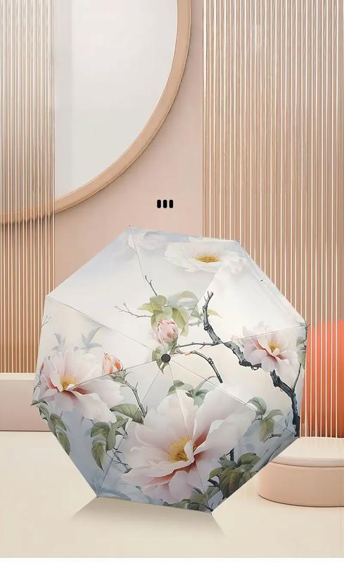 Элегантный складной зонт с цветочным принтом - Прочная железная рама, Ручное открытие. Под заказ 10-15 дней