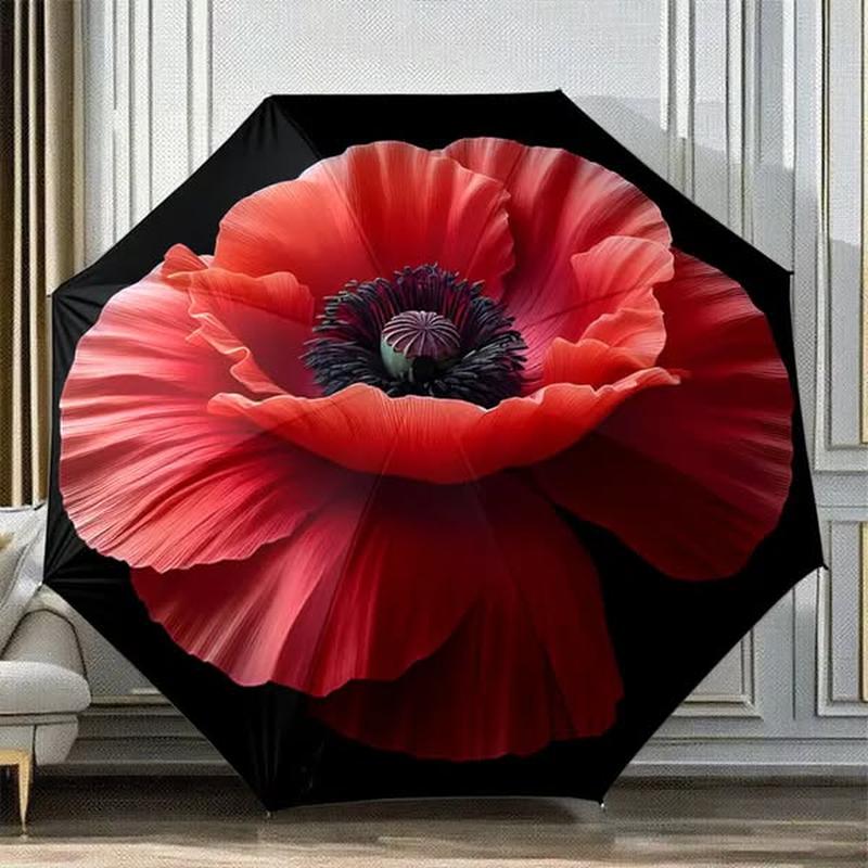Автоматический складной зонт с большим ярким красным цветочным дизайном на черном фоне Под заказ 10-15 дней