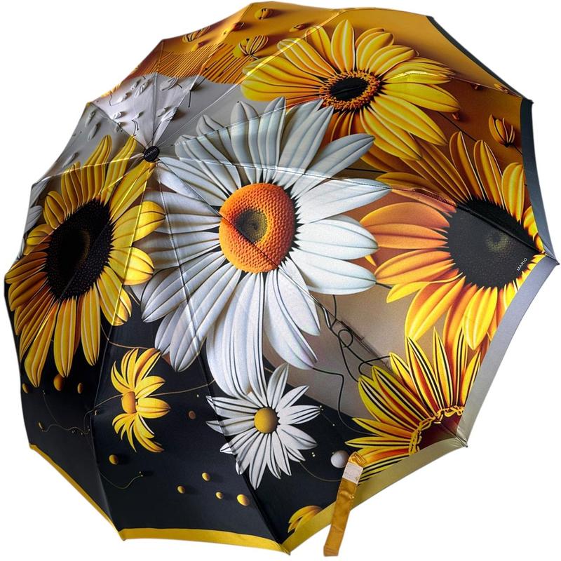 Женский зонт-автомат на 12+5+2 сегментных карбоновых спиц, купол из сатина с цветочным при...
