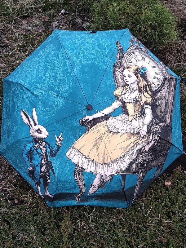 Ваша личная магия вне времени: Зонт, открывающий дверь в Страну чудес! ✨ «Все более странные и странные!» —щитила бы Алиса, увидев этот аксессуар. Если вы устали от серых будней и ищете что-то действительно особенное, этот зонт создан именно для вас, дорога мечтательница! Этот зонт - идеальный аксессуар для невероятных фотосессий! Благодаря глубокому бирюзовому цвету и детализированному винтажному принту, она создает в кадре атмосферу таинственности и сказочного шика. Ваши фотографии с Алисой и Белым Кроликом соберут сотни лайков и восхищенных комментариев! ☀️ От солнца: Подарит прохладную тень и изысканный вид при летних прогулках. 🌧️ От дождя: Капли просто будут скользить по куполу, не отваживаясь побеспокоить вашу прическу. ❄️ От снега: Прочный каркас будет уверенно держаться среди зимней хуртовины. Сюжет с Алисой на роскошном троне и узоры дамасского добавляют аксессуару королевского вида. Каждая деталь принта - это отдельная история. Полный автомат: Одно нажатие кнопки - и магия разворачивается над вами! Механизм фиксации (замочек) довольно тугой и прочен. Это гарантирует, что мощная пружина будет надежно держать купол даже во время ветра. Требуется уверенное нажатие — признак качественной и долговечной вещи. Всего 28 см - она легко скроется в вашу сумочку, дожидаясь нового кадра или внезапного дождя. Широкий купол (98 см) – надежная защита для вас и ваших грез. Устойчивость к ветру – потому что настоящая королева всегда сохраняет покой! Не бойтесь следовать за Белым Кроликом! С этим зонтиком каждая ваша прогулка превратится в приключение, а любая непогода — в удачный повод для сказочного фото. 🐇🎩☕ Ищете что-то особенное? У нас есть много других оригинальных и интересных украшений, которые ждут вас. Заходите и выбирайте