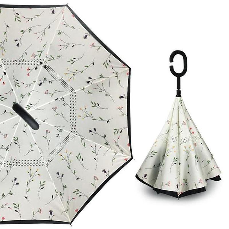 Зонт зворотного складання - це інновація нового покоління! Його відмінності від простого парасольки: 1. Рукоятка парасольки надівається на кисть і звільняє Ваші руки для інших справ (роботи зі смартфоном, сумки, склянки кави, відкриття дверей, ітд) 2. Парасолька може стояти сам. Без опори. Також в такому стані сушиться, економлячи місце! 3. Складається мокрою стороною всередину, що оберігає Вас і Ваші речі від намокання, коли Ви тримаєте його складеним після дощу, наприклад, у транспорті.