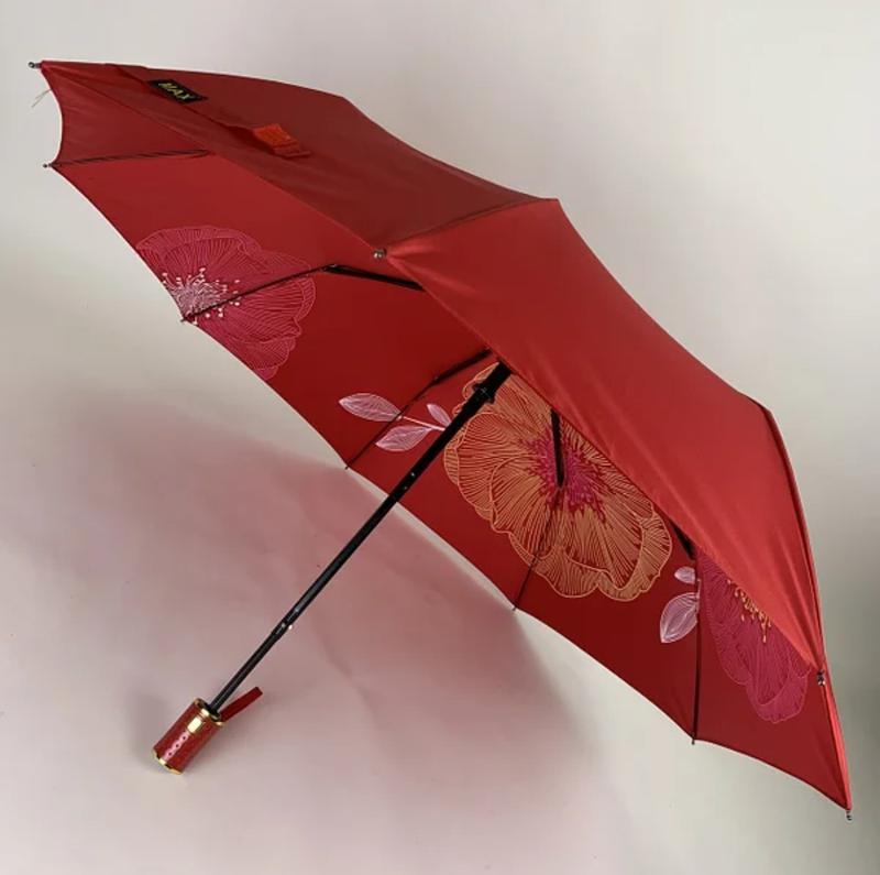 Жіноча складана парасолька-напівавтомат з подвійною тканиною від Max з прінтом квітів, червоний, max134-3