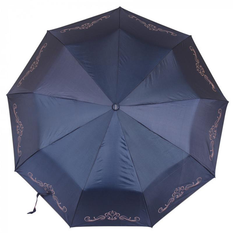 Стильный женский зонт спокойного синего цвета. Купол украшен красивым бронзовым рисунком. Такой зонтик - отличный способ выразить свою индивидуальность. Окантовка выполнена в сером цвете. В зонтах-автоматах DE ESSE предусмотрена система "антиветер", благодаря которой изделие останется исправным даже при сильном ветре. Механизм автомат открывается и закрывается с помощью кнопки. Удобная прорезиненная ручка не выскальзывает из руки. Приобретая зонт DE ESSE, Вы получаете не только надежного защитника в непогоду, но и стильный аксессуар, как дополнение к Вашему образу. Диаметр измеряется под куполом от края спицы до края противоположной спицы.