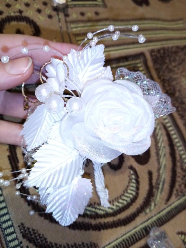 Состояние новых. Красивые белоснежные розы. Украшено бусинами и прозрачными стразиками.