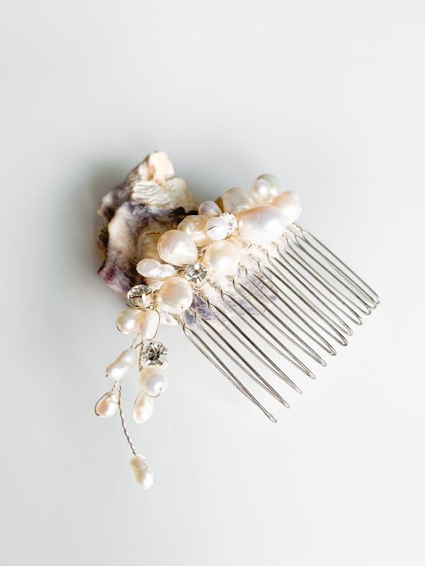 Свадебная расческа в прическу из натуральных жемчужин и чешских страз. Проволочка-посеребренная. Ручная работа. Длина-10 см.