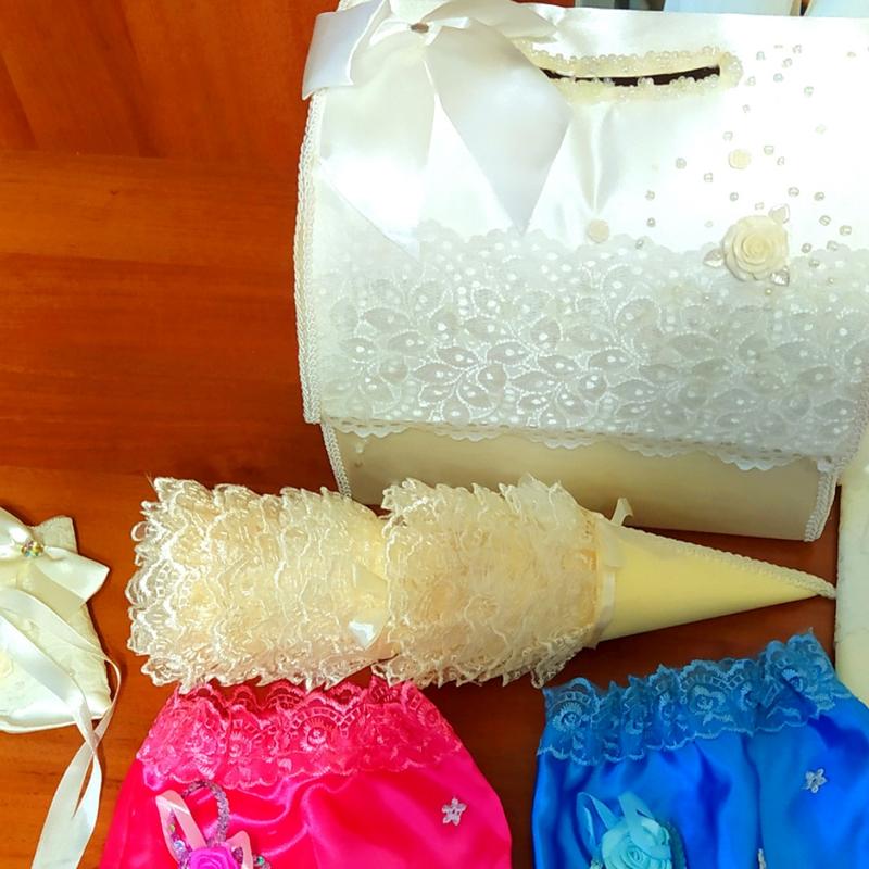 Набор на свадьбу цвет айвери -для РАСГСУ (подушечка для обручек, папка для совещания - ДУЖНО ВЫГЛЯДУЕТ, ДЛЯ ФОТОСЕСИИ ), сундук для денег, ползунки на конкурс). Все в идеальном состоянии.