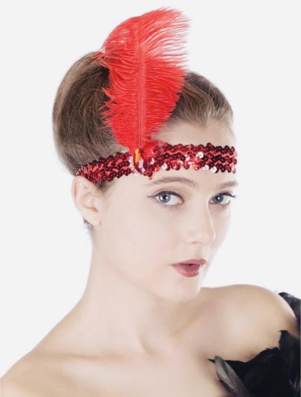 Повязка красная на голову с перьями и стразами, украшение в стиле Гетсби Вечеринка в стиле Большого Гетсби,20х,30х,ретро Для маскарада, карнавала, хелловина, театра, косплей, фотосессий, выступлений, ролевые игры, фестиваль, костюмированная вечеринка, в стиле Гетсби, гангстер Чикаго.