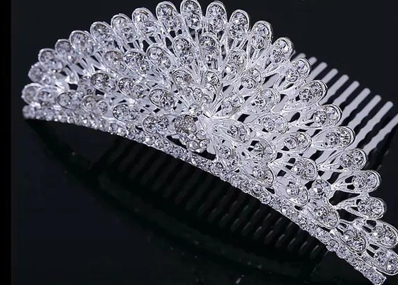 Красивая и оригинальная мини корона на гребне.Корона в форме птицы-пачья подчеркнет оригинальность прически.Очень красиво переливается на солнце.