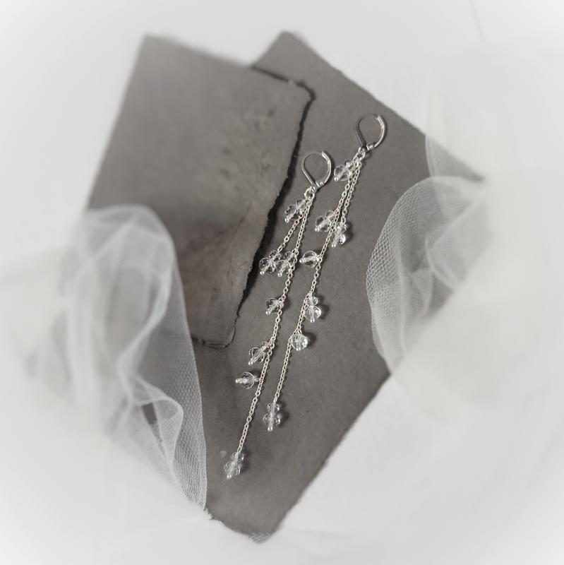 Серьги цепи, длинные серьги, серьги для невесты, серьги на выпускной, серьги подвески сва...