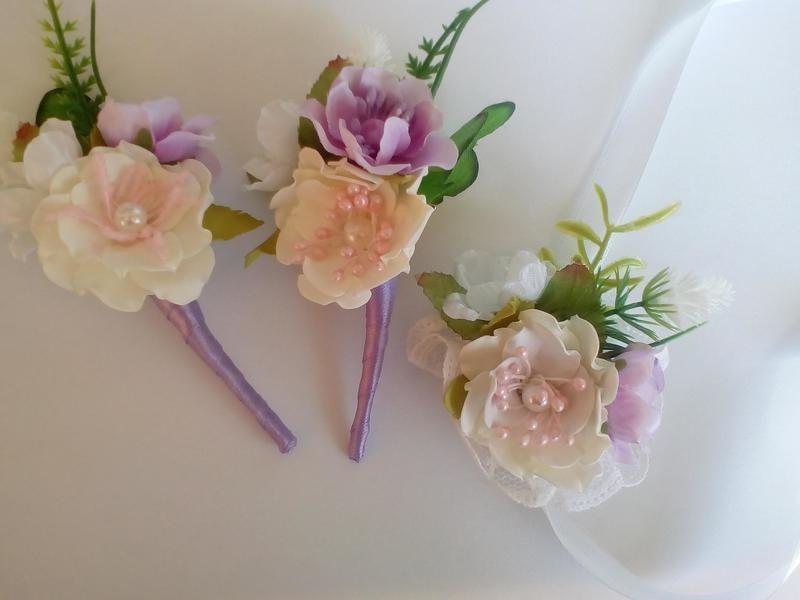 Бутоньєрки з фоамирана,мережива і атласних стрічок.