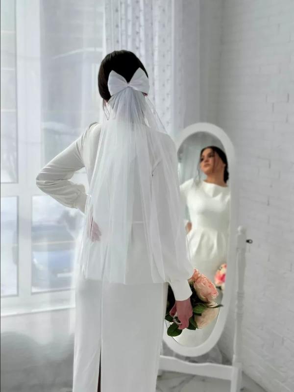 Фата с фатиновым бантом крепление: на заколке уточка длина: 70 см цвет: ✔️ белый ✔️ молочный оплата на карту банка или безопасная оплата отправка заказа 1-2 дня 🌹