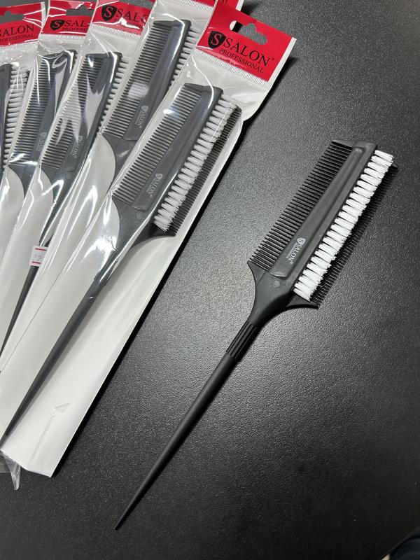 Расческа гребешок для профессиональных причесок Многофункциональная начесы,хорошо убирает петухи ,наконечник для идеального пробора и разделения прядей! Гребень для начеса со щетиной и шпикулем от бренда SALON является идеальным инструментом для создания объема и создания прически. Этот гребень объединяет в себе функциональность щетины для расчесывания и шпиля для точного размещения прядей, делая его незаменимым для управления текстурой волос. Основные характеристики: 1. Щетина для расчесывания: Гребень оснащен щетиной, которая помогает расчесать волосы. 2. Шпикуль для точного размещения: Шпикуль или острая сторона гребня предназначена для разделения волос на прядки или точной исправления прически. 3. Легкая и удобная конструкция: Гребень имеет легкую и эргономичную конструкцию, что обеспечивает удобное удержание и использование. 4. Прочный материал: Изготовлен из высококачественных материалов, гребень устойчив и вынослив, что гарантирует длительный срок службы. 5. Универсальный размер: Стандартный размер гребня делает его универсальным и подходит для большинства типов волос.