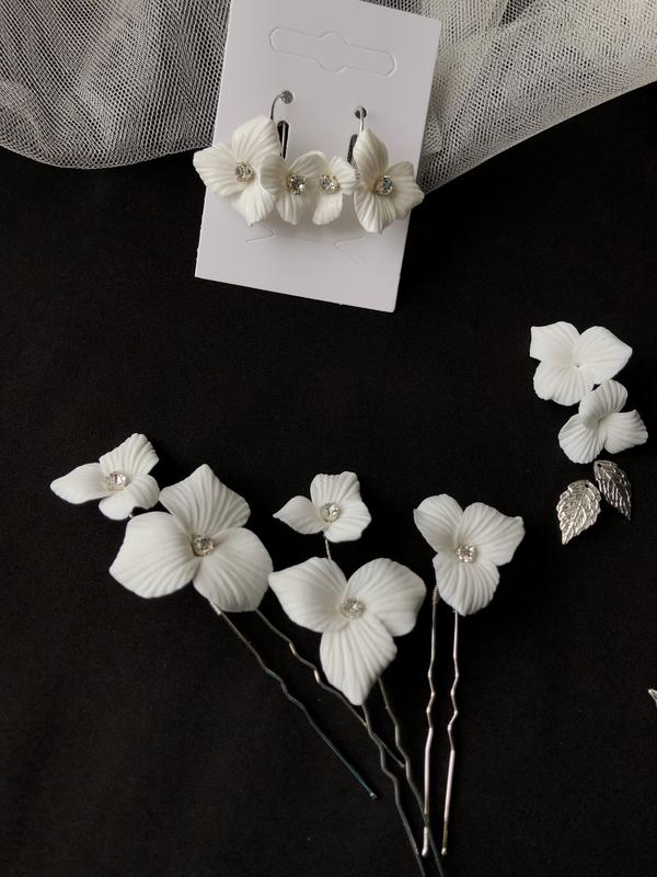 Шпильки в зачіску з квітами полімерної глини, прикраси в зачіску нареченої, комплект шпиль...