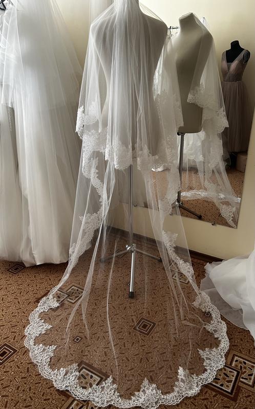 Неймовірна Розкішна Стильна Фата з мереживом Виконана в єдиному екземплярі, в молочному кольорі Довжина верхнього шару 80 см, нижнього 200 см Має гребінець для зручного кріплення