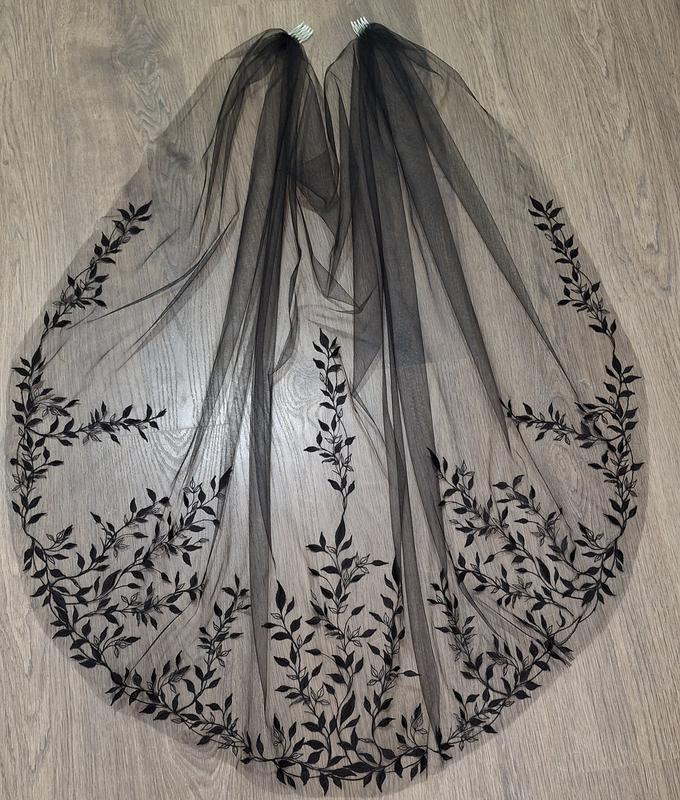 Дизайнерська фата на 2 гребнях ручної роботи з вишивкою. Колір сітки і вишивки може бут. Будь який. На фото довжина 110 см. Можна замовити будь яку (ціна перераховується).