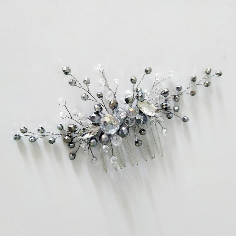 Гребень создан страз, хрустальных бусин и ювелирной проволоки. Возможно и в другом цвете. Для полного комплекта могу дополнить серьгами и браслетом.