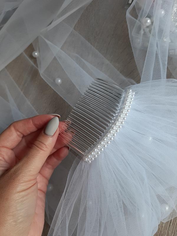 Фата классика в 1 ярус на гребне Изысканная классика, очаровательная модель с жемчугом Фата новая, ждёт свою прекрасную невесту 🌸 длинна: 100 см материал: свадебный фатин Цвет в наличии: белый