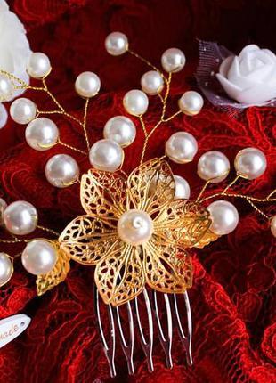 Гребень на выпускной или в причёску невесты 👰 Выполнен в жемчужно-золотых оттенках ✨