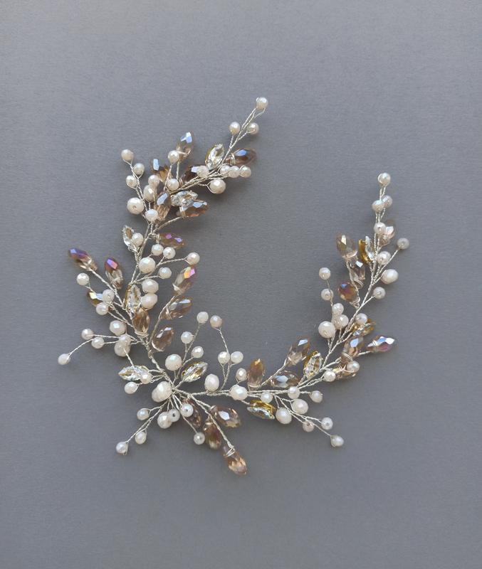 Гілочка в зачіску для нареченої, весільні прикраси в зачіску з натуральними перлами