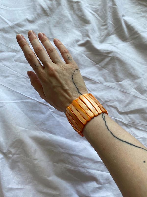 Браслет з натурального перламутру коралового кольору, на резинці. Гарно переливається ☀️ Чудовий акцентний аксесуар!